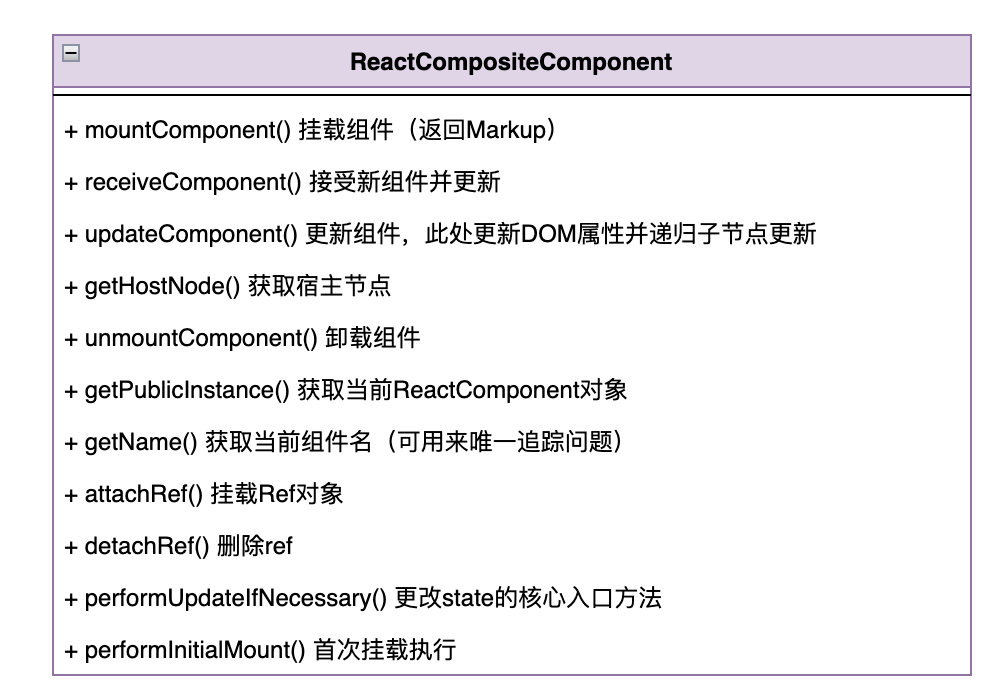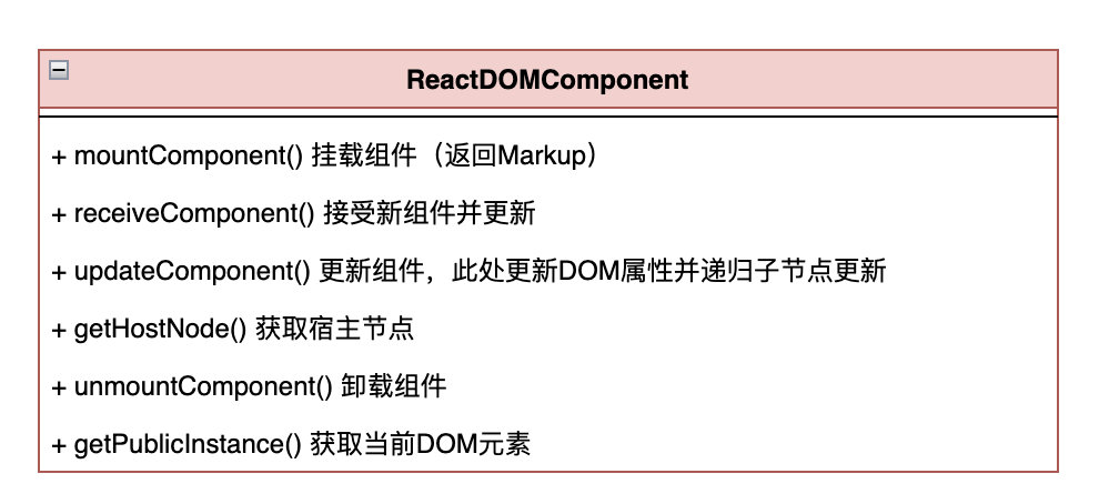 的实现逻辑也较为复杂,但是React核心生命周期都在这里实现,我们写的React组件大多都是需要这个控制类的辅助,最终访问到DOMComponent