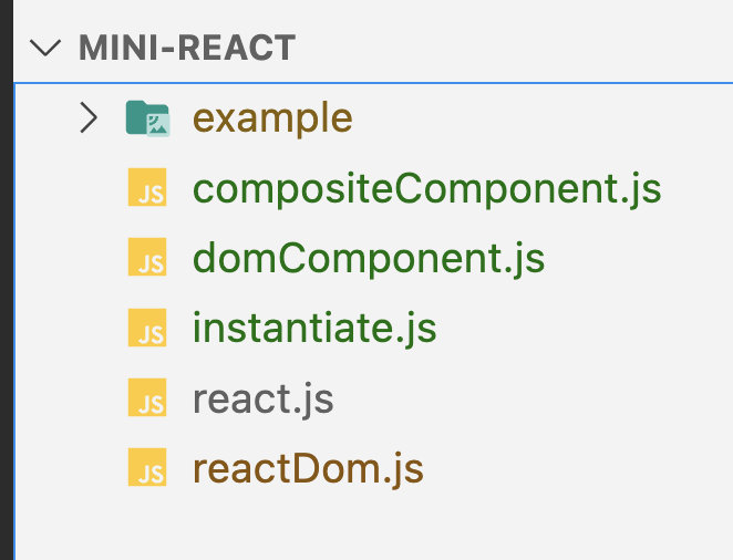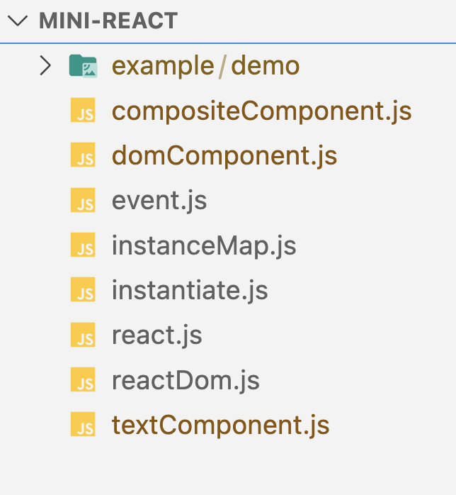 根据我们之前对React挂载机制的分析,首先需要实现的是相应控制类,在这里我们可以简化一下,实现两个控制类就好: