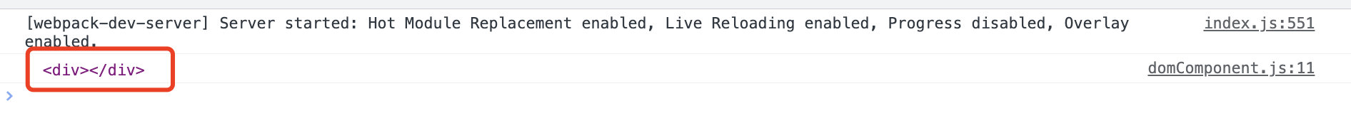 接下来实现DomComponent的挂载过程,实际上对于DOM组件来说,我们需要实际创建一个DOM节点出来: